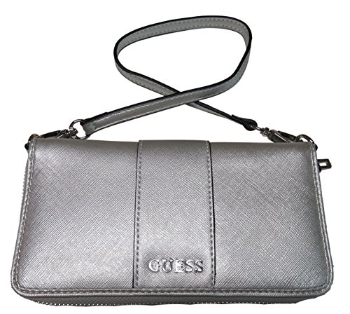 Guess Women's Zip Around Wristlet Wallet Ware Silver