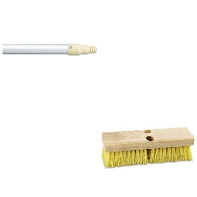 Studio : Boardwalk Publisher : Boardwalk Binding : Office Product Product Description lt;stronggt;BWK3310lt;/stronggt;lt;BR/gt;Boardwalk Deck Brush Headlt;BR/gt;Narrow hardwood block enables enhanced pressure transfer for more effective scrubbing. Two threaded handle holes allow you to switch orientation to achieve even bristle wear. For use with threaded 1 1/8-inch diameter handles sold separately. Bristle Material: Polypropylene Brush Length: 10amp;quot; Bristle Length: 2amp;quot;.lt;BR/gt;lt;BR/gt;lt;stronggt;RCP6355GRAlt;/stronggt;lt;BR/gt;Boardwalk Deck Brush Headlt;BR/gt;Strong shaft ensures durability. Threaded tip features a strip-resistant die cut. Standard sizing allows you to use nearly any common floor sweep. Vinyl grip and plastic tip. Handle Length: 57amp;quot; Handle Diameter: 1amp;quot;. 0
