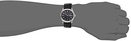 Amazon.com Solar. No battery change required and powered by all types of light. Solar cell with high performance electricity generation. Energy-efficient movement with long power reserve. This dress watch has a brushed and polished stainless steel case. The black leather strap creates a timeless finish. The timepiece is constructed with a durable crystal that protects the blue dial. LumiBrite hands and English/Spanish day/date calendar. 30 meters water resistant. 0