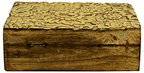 Carved with 'Peacock' design this box is a great gifting option for your loved ones. Distressed finish to give antique look to the natural color of mango wood