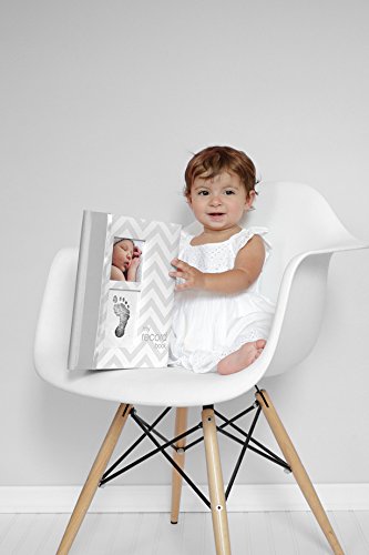 Pearhead Chevron Baby Memory Book with an Included Clean-Touch Ink Pad to Create Baby's Handprint or Footprint, Grey