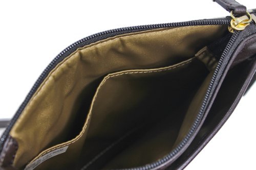 -. Feature : Top zip closure / Adjustable crossbody strap / Exterior slip pocket / Interior wall pocket / Goldtone hardwar