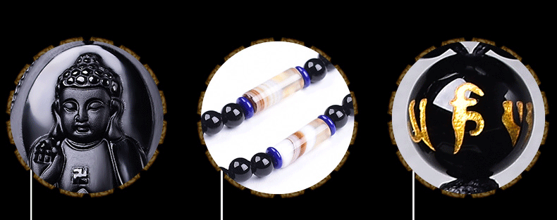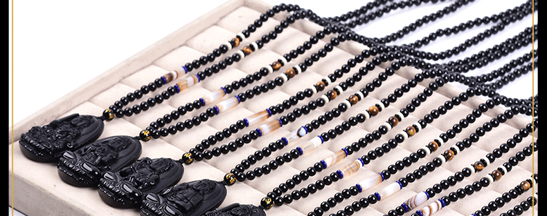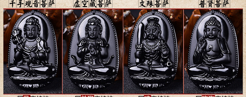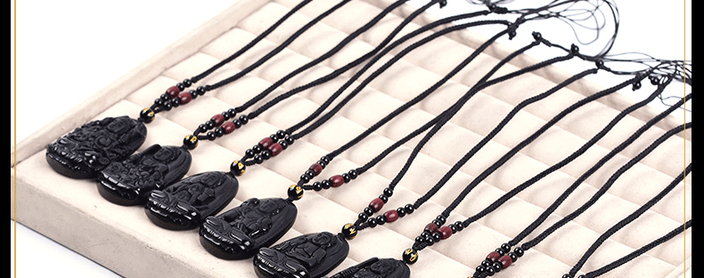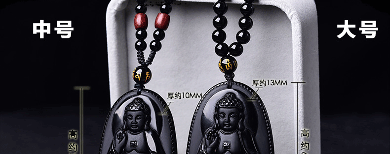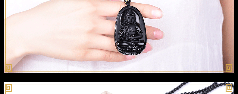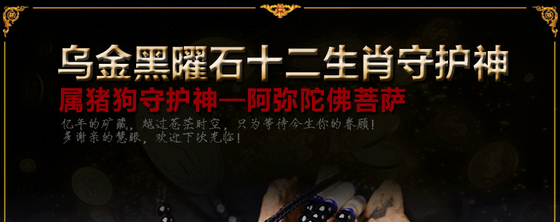 开光天然黑曜石阿弥陀佛吊坠生肖狗猪守护神本命佛项坠男女