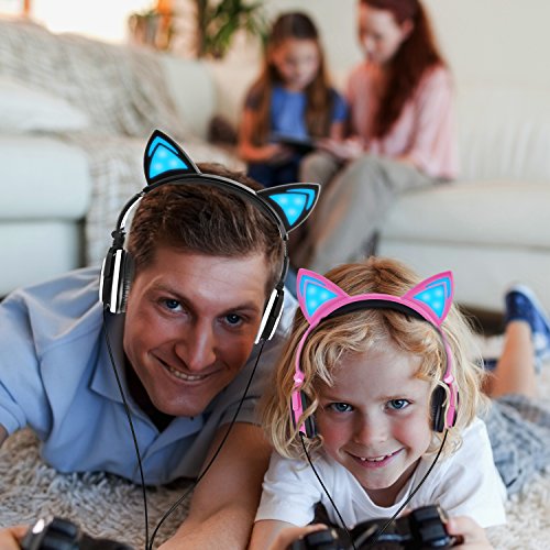 Cute and Fashion Design: Headphone with glowing light and cat ear ,colorful and attractive flexible makes for a good gift for friends,kids,girls,woman,girlfriend,daughter,Cosplay fans.