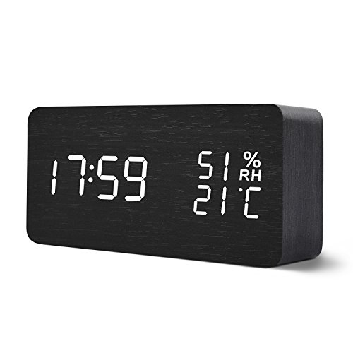 -. Title : Teecoo 目覚まし時計 大音量 木目調 デジタル LED 置き 卓上 多機能 オシャレ インテリア 温度計 湿度計 振動 音感センサー カレンダー アラーム複数設定 輝度調節 設定記憶 省エネ機能 プレゼント 乾電池式 USB電源 ナチュラル・ホワイト