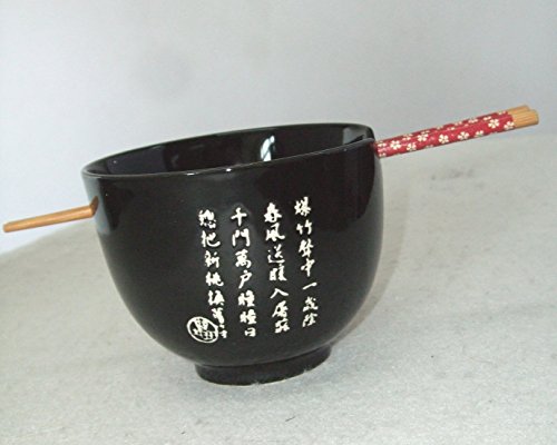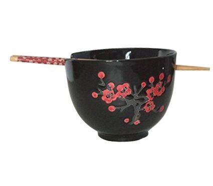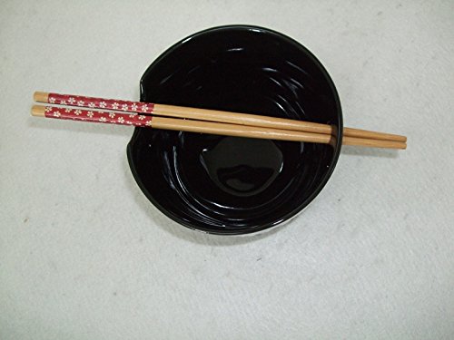 MasterChinese Japanese Style Ramen Udong Noodle Soup Cereal Bowl 16 Fl. Oz. Set with Chopsticks (Cherry Blossom -Black)