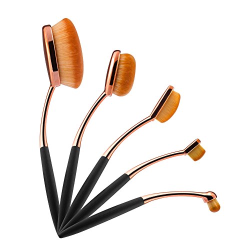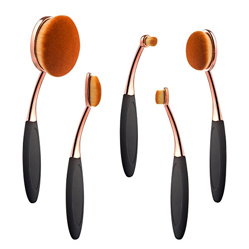 Summifit 5 Pcs Soft Oval Makeup Brushes Set Professional Foundation Contour Concealer Blush Eyebrow Eyeliner Brush Kit (Black Rose Gold)