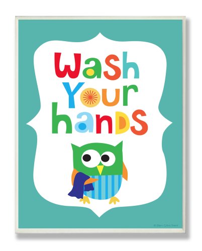 The Kids Room by Stupell Wash Your Hands On Blue Background Rectangle Wall Plaque, 11 x 0.5 x 15, Proudly Made in USA
