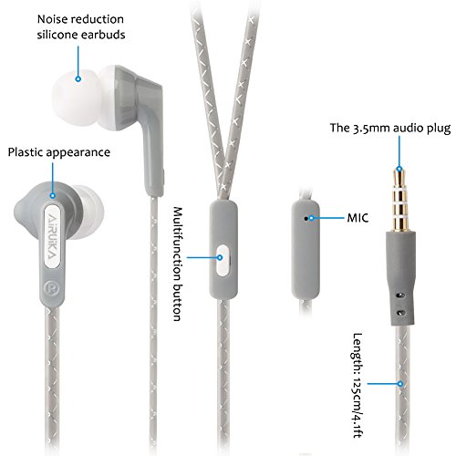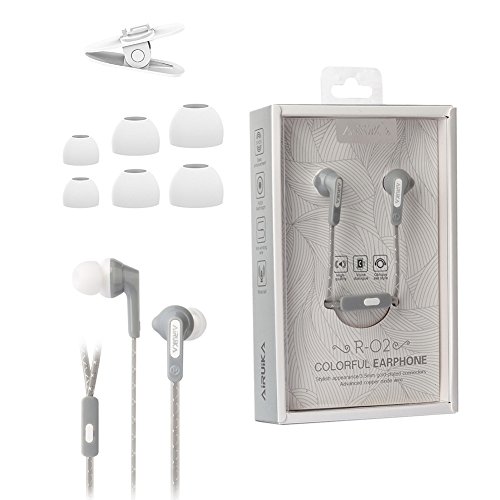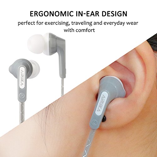 AIRUIKA R2 Headphones Wired In Ear Earbuds Earphones Sports Stereo Bass Headsets with Microphone/Controller Noise Cancelling for iPhone,Samsung Galaxy,iPad,MP3 Players, Extra Durable Flat Cord