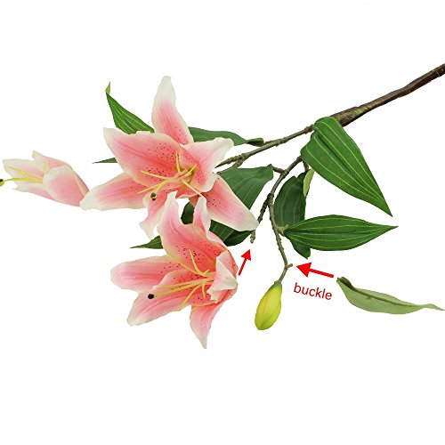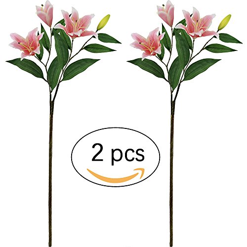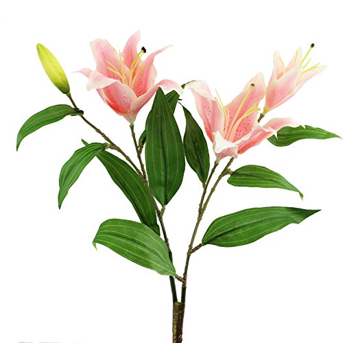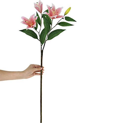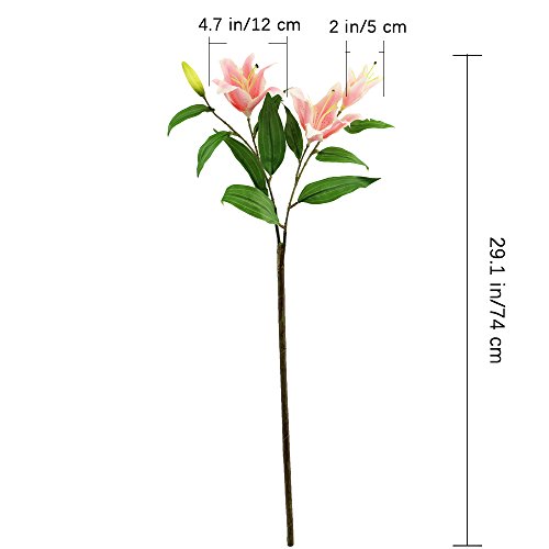 Supla 2 Pcs Real Touch Silk Flower Multi-headed Tiger Lily Spray with leaves29" Tall x 4.7" Diameter in Pink florist flowers for floral arrangement