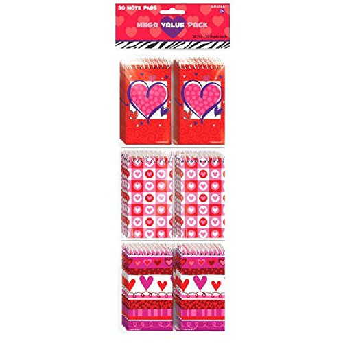 Valentine's Day Note Pad Party Favour and Giveaway (30 Pieces), Red/Pink, 16" x 5 3/4" (Package Size).