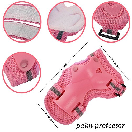 -. Feature : Material: Breathable mesh cloth + PE shell. / One pair of knee pads , elbow pads and palm guards are included in the package, Small size suit for kids who is age of 3-8 years old. Medium size suit for kids who is age of 8-17 years old. / The velcro straps behind the pads offer a flexibility for your lovely kids children to enjoy the riding adventure experience in a comfortable way. / The knee elbow wrist pads keep your children away from danger while enjoying multi sport activities. Most of the dangers happens when the body hit to other materials due to the accident such as falling from the bicycle, rollerblades, ATV and skateboard, It's important to have the pads for protection. / Special design for children and kids. It is the good choice as the gift for Children's Day, Christmas Day and Birthday etc.