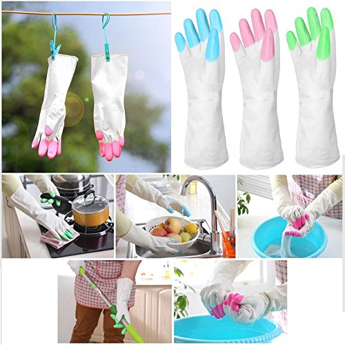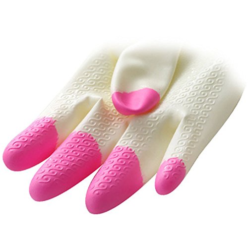 Ursmart Kitchen Chores Clean Waterproof Rubber Gloves Durable Household Laundry Dishwashing Gloves Kitchen Gloves Wash Dishes (pink)