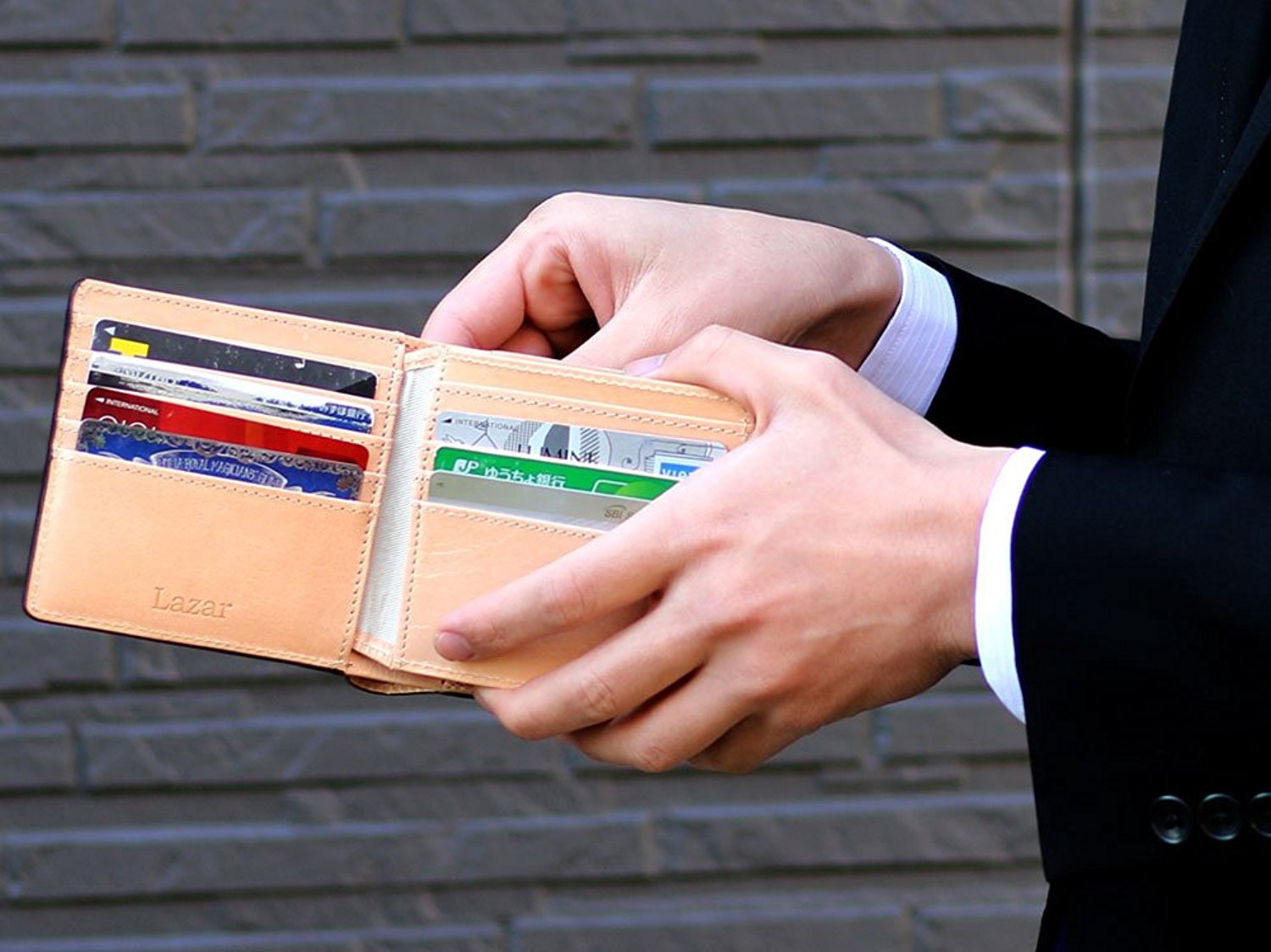 Lazar's wallet uses the leather which is raw leather which is not surface-treated.