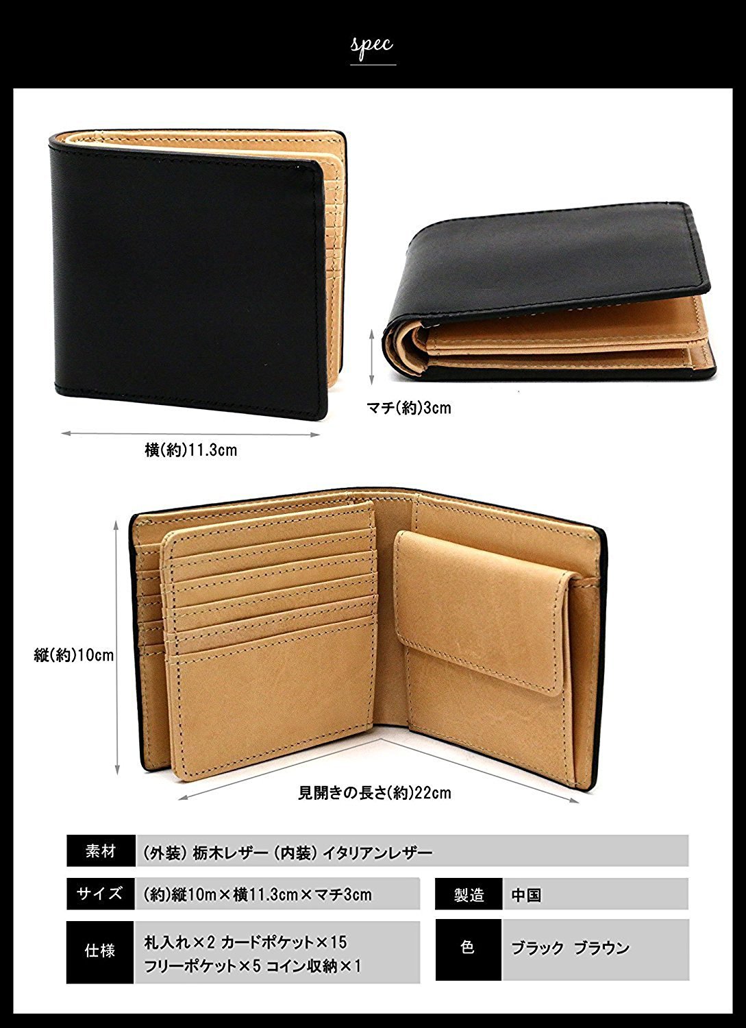 Material = exterior Tobiki leather company's full vegetable tanning leather (Tochigi leather) · interior made Italian vegetable tanning leather (Italian leather) Producing country = China