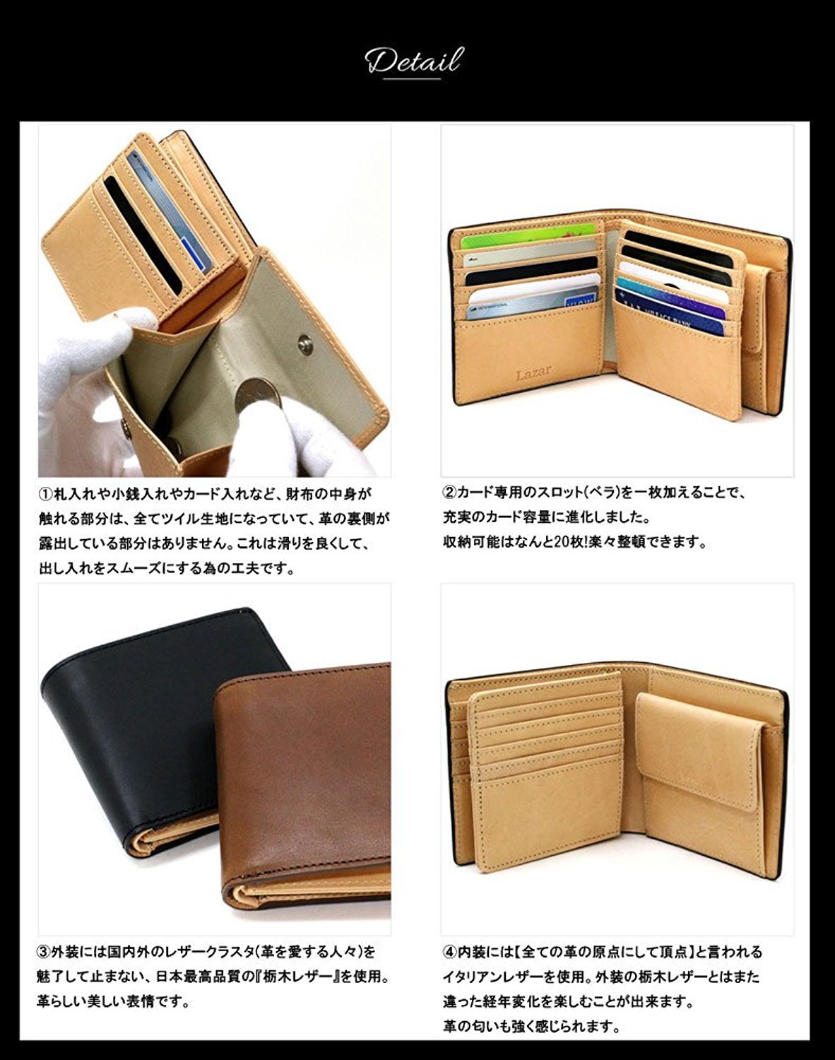Speaking of Italian leather is famous for oiled leather soaked with plenty of oil, but Lazar's wallet uses tanned leather with tanned leather to match the exterior Tochigi leather.
