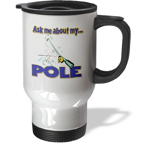 3dRose tm_160886_1 Ask Me About My Pole Funny Fishing Humor Travel Mug, 14-Ounce, Stainless Steel