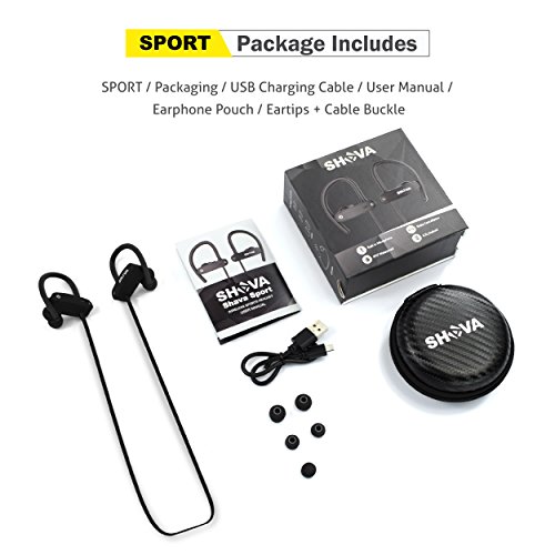 -. Binding : Wireless Phone Accessory -. Brand : SHAVA -. Color : black -. EAN : 4883273125658 -. Feature : IPX7 SWEATPROOF EARPHONES - SHAVA Sport headphones are IPX7 Water-resistant Nano-coating efficiently protects sport headphones from sweat and ensure more guaranteed life span, perfect for running, jogging, hiking, yoga, exercises, gym, fitness, travelling and etc. / ENHANCED AUDIO QUALITY - SHAVA Sport headphones use expertly tuned driver, CSR chip and Bluetooth 4.1 to get the perfect audio you always wanted. The superb bass is well balanced with richer and crisp sound with quality earbuds of different sizes for that in-ear stereo surround / BLUETOOTH 4.1 - SHAVA Sport Bluetooth headphones support two devices connected simultaneously and allow automatically reconnecting if paired successfully before. The headphones are widely compatible with most cell phones, such as iPhone and Android phones, and also plenty of other Bluetooth devices / SECURE & COMFORTABLE FIT - SHAVA Sport Bluetooth headphones are ergonomically designed with soft and flexible ear-fins to fit over the ear for maximum comfort. The buttons for audio control are also well placed on the headset so that you have total control even on the move / LONG-LASTING BATTERY - Upgraded built-in lithium batteries support up to 8 hours talk / audio playtime time. SHAVA Sport Bluetooth headphones supports battery icon on iOS devices and quick charge of 1.5 hrs -. Label : SHAVA -. Manufacturer : SHAVA -. OperatingSystem : Android Windows -. PackageQuantity : 1 -. ProductGroup : Wireless -. ProductTypeName : WIRELESS_ACCESSORY -. Publisher : SHAVA -. Studio : SHAVA -. Title : SHAVA Bluetooth Headphones Waterproof IPX7, Wireless Earbuds Sport, Richer Bass HiFi Stereo In-Ear Earphones w/ Mic, Case, 8 Hrs for Running Workout Noise Cancelling Headsets (Black)