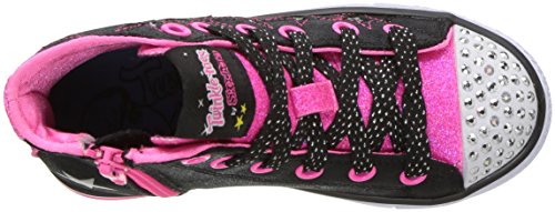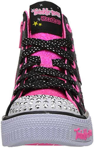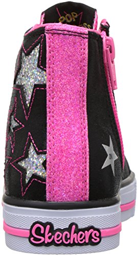 Skechers Kids Girls' Shuffles-Rockin Stars Sneaker, Black/Neon Pink, 2.5 M US Little Kid
