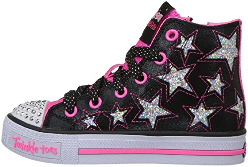 Skechers Kids Girls' Shuffles-Rockin Stars Sneaker, Black/Neon Pink, 12.5 M US Little Kid