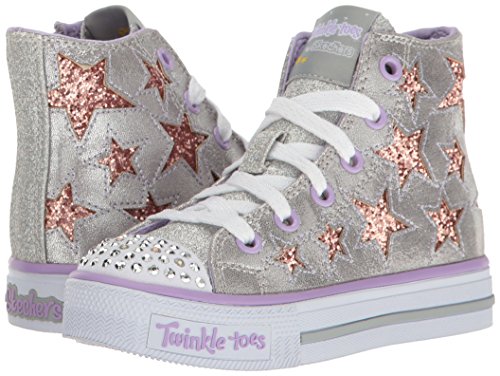 Skechers Kids Girls' Shuffles-Rockin Stars Sneaker, Silver/Lavender, 11.5 M US Little Kid