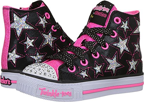 Skechers Kids Girls' Shuffles-Rockin Stars Sneaker, Black/Neon Pink, 10.5 M US Little Kid