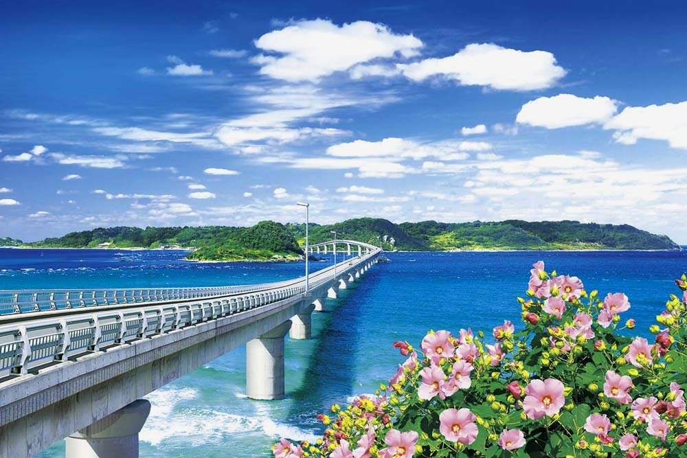 ! 1000 piece jigsaw puzzle Aim of Guru Tsunoshima Bridge and the blue sea - Yamaguchi (50x75cm)