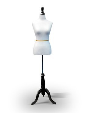 White Female Dress Form on Black Tripod Wooden Base Size 2-4 Small 33" 24" 34"