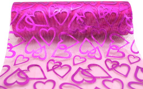 Kel-Toy Heart Print Sheer Fabric, 6-Inch by 10-Yard, Fuchsia with Hearts