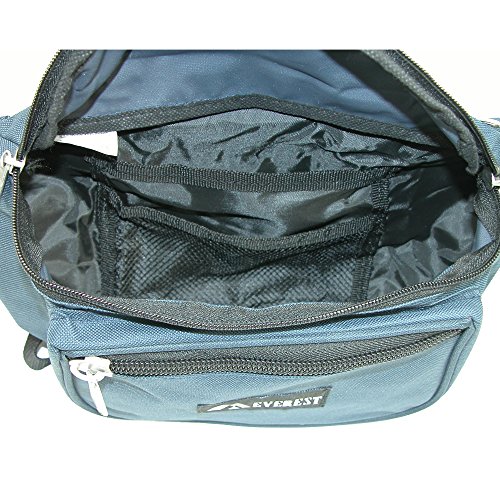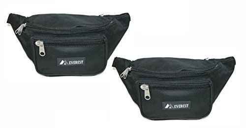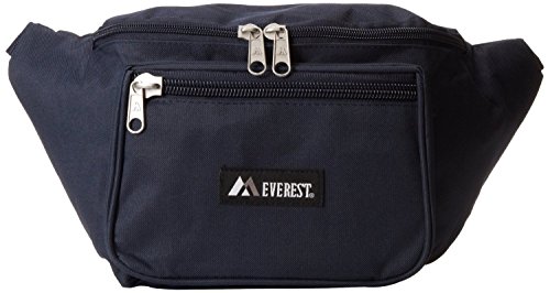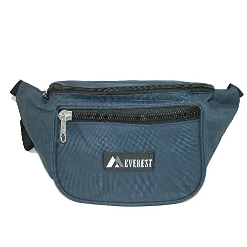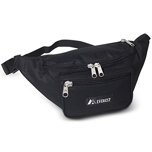 Studio : Everest Publisher : Everest Binding : Apparel Product Description Sport this large size fanny pack on vacation, sporting events or walking. The pack is constructed with durable 600 Denier Polyester. It has three zipper compartments that will hold more stuff than our medium size. In addition, the main compartment has a mesh pocket to help you stay organized. This item can hold a cell phone, wallet, keys and a lot more. You can keep your hands free, yet it is small enough not to be in the way. Also, it has a key ring attachment so you can easily find your keys. The fanny pack measures 16.5 x 6.5 x 4 inches. 0