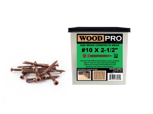 WoodPro Fasteners CD10X212RW-5 T20 5-Pound Net Weight No 10 by 2-1/2-Inch Red Wood Composite Deck Screws, 435-Piece