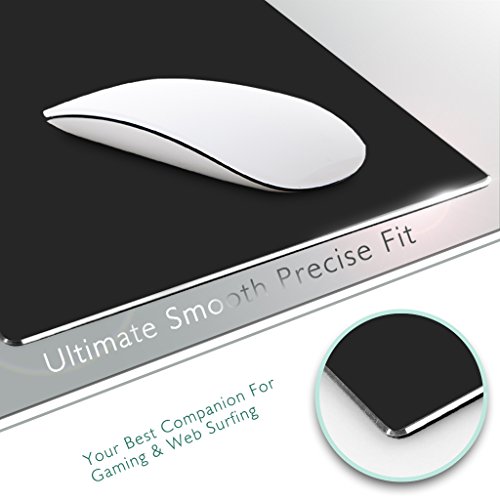 -. Feature : ★Slim & Lightweight: Dimension: L9.25xW6.1xT0.06 inch. Weight: 5.25 oz, Package Includes: 1 x gold/silver/black/blue Aluminum Mouse Pad. Supports fast and accurate location for wired wireless bluetooth computer mouse,especially a best choice for game players. / ★Solid & Durable: The aluminum pad is a highly stylish mouse pad, cut from a slab of aluminum. When designing the aluminum pad,we kept the spirit in mind to further accentuate your already sleek work space,solid and durable,easy to clean. / ★High-Density Polishing Aluminum Surface:The aluminum surface was oxidation ionized to create a even smoother surface than it was originally. The mouse glide and move easily over the surface of the aluminum pad. The aluminum pad will not only keep your pointer on the mark,but keep your work space looking crisp and clean. / ★Upgraded Non-Skid Flannel Base: The flannel base are added on the bottom of the aluminum pad to keep it in place.While you are navigating through the web or editing videos, your aluminum pad will stay stable and also offer some protection from scratching the surface of the table. / ★Much Harmonious With MacBook: Much harmonious with Macbook,computer and laptops, when you use your laptop and there is not enough room beside it, this pad prevents the keys underneath from being pressed inadvertently.
