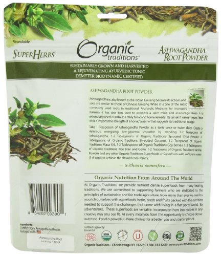 Organic Traditions Organic Powder, Ashwagandha, 7 Ounce (Pack of 12)