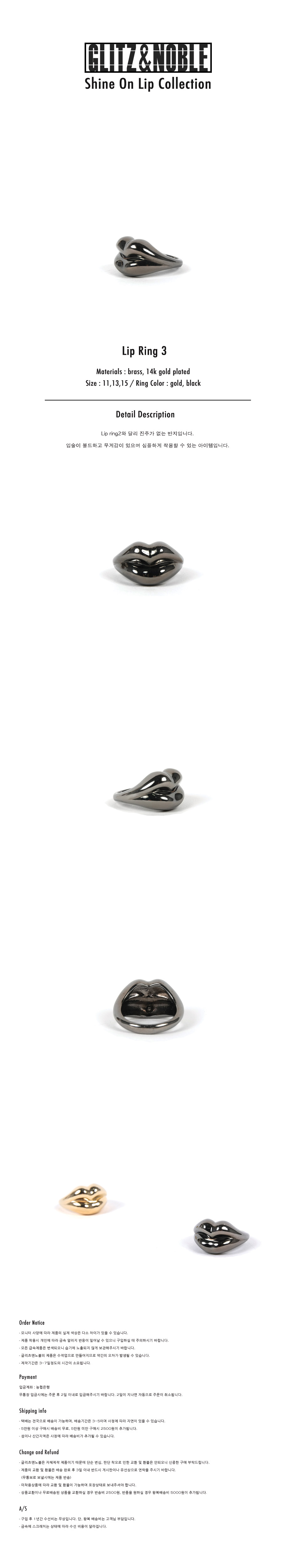 | SHINE ON LIP COLLECTION: SHINE ON LIP 컬렉션에서는 입술이 주는 시각적인 요소와 감정적인 요소에 영감을 받아 다양한 디자인의 주얼리를 연출했습니다. 입술에서 보여지는 감정, 입술의 라인, 입술의 부드러움과 강렬함이 교차되는 느낌, 입술이 만들어내는 형태들에서 다양한 영감을 받았으며, 입술은 하나의 오브제로 착용자에게 다양한 감성을 느낄 수 있도록 디자인 했습니다 PRODUCT DETAIL: 이 제품은 볼륨감이 있는 입술 반지입니다. 볼드하고 무게감이 나가는 제품입니다. 소재는 황동 + 흑도금으로 제작되었고, 사이즈는 11호, 13호, 15호입니다. 글리츠 앤 노블은 모든제품을 직접 제작함으로써, 주문이 들어온 후에 제작하게됩니다. 주문하고 제품을 받을 수 있는 기간은 2일 ~ 5일 소요될 수 있습니다. |