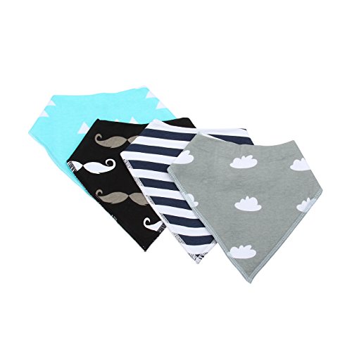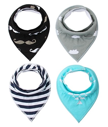 PERFECT GIFT Our 4-pack of baby bandana bibs makes the perfect gift for new parents, new grandparents, baby showers... any occasion imaginable. Moms will love the look of these modern, fun, fashionable, practical bibs. A happy, dry baby makes for a happy, smiling mom. Your baby will be the envy of the day care!