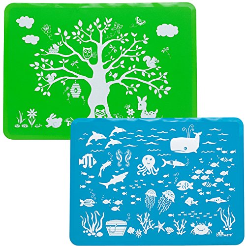 -. Feature : Kids' placemats, set of 2 / Soft, food-grade, BPA- and phthalates-free silicone / Non-slip bottom sticks to eating surfaces / Dishwasher-safe