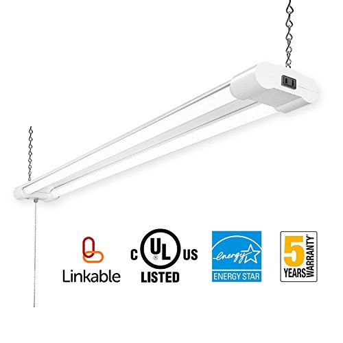 Easy Installation:Suitable for suspend mount,accessories included in package.Plug-n-Play, 5' plug-in cord,no wiring and reconstructing needed.Build-in easy end-to-end plug-in connector,simply link up to max 10 units.Pull cord switch for easy ON/OFF access.