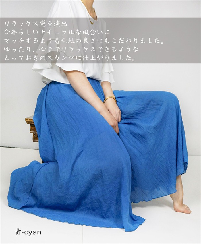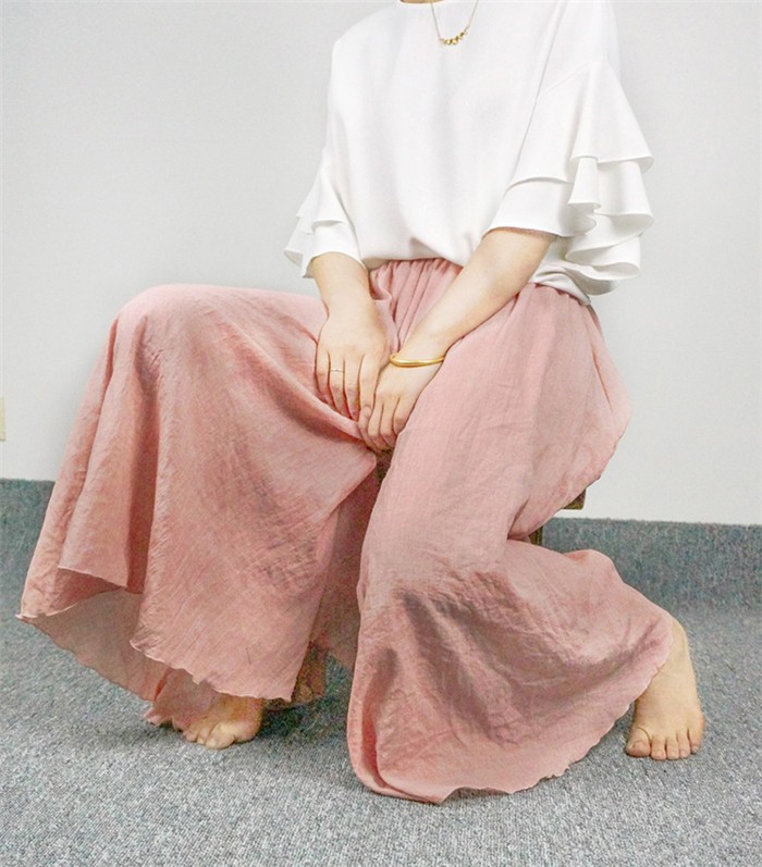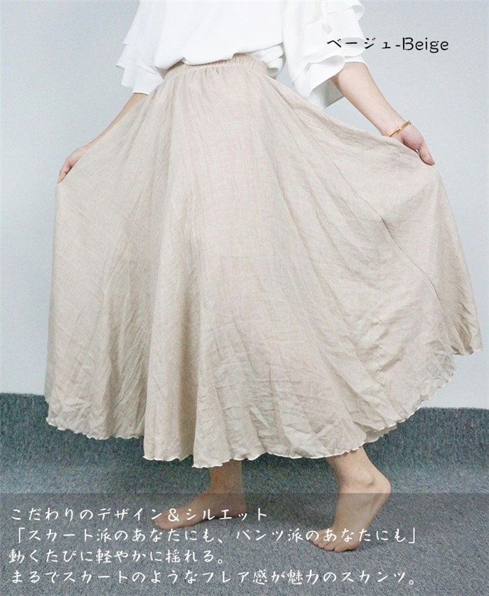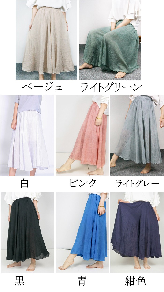 ★生産国:中国★素材:麻・ポリエステス・綿生地の厚さ:薄手裏地:ありウエストゴム:あり★カラー:ベージュ ピンク 白 ライトグリーン 青 ライトグレー 紺色 黒※お客様ご使用のPC環境により商品画像のカラーが多少異なる場合があります。仕入時期により多少デザインなど異なる場合があります。ご了承ください。★サイズ(cm):F:着丈約82 ウエスト61 裾幅約161 股下56 股上35 ※サイズは人の手によって測っているため、1-3cmの誤差がある場合がございます。予めご了承くださいませ。