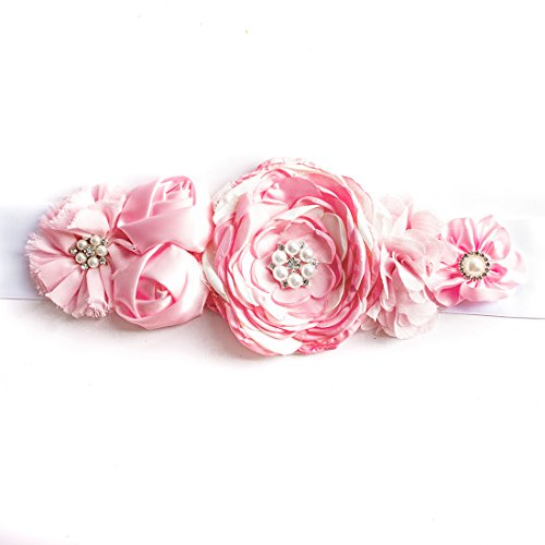 Product DescriptionMaterials:Satin Ribbon, Handmade Fabric flower, rhinestone ,lace. Belt length:180cm Flower length:22cm Belt width:5cm0