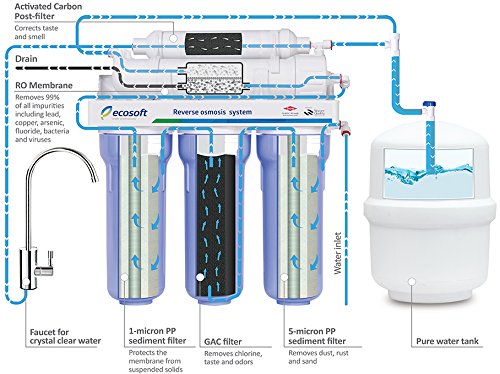 Ecosoft & Dow Chemicals 5 Stage Reverse Osmosis Water Filter System Under Sink, U.S. Designed DOW FILMTEC Membrane Removes 99% Bacteria & Harmful Dissolved Solids At 50 GPD - 1 YEAR FREE REPLACEMENTS