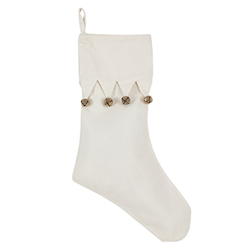 SARO LIFESTYLE Panforte Collection Christmas Jingle Bell Cotton Stocking, 13" x 19", Ivory