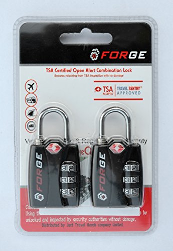 -. Feature : MOST DURABLE TSA RECOGNIZED AND ACCEPTED LOCK. Forge locks are designed from the ground up to be toughest lage locks around. Our special alloy lock bodies, hardened steel shackles and patented internal mechanisms can take such a pounding that we back our product up with an unconditional lifetime guarantee. If you can find a way to break these locks, we'll gladly refund or replace them. / ALWAYS RELOCKED, ALWAYS PROTECTED. Most TSA locks on the market do not need to be re-locked by a TSA agent after their inspection is completed. With our TSA lage lock the agent has to re-lock your suitcase to remove their key. With Forge you never worry about your suitcase locks being left open again. / KNOW IF YOU'VE BEEN INSPECTED. Know if an agent has opened your TSA approved lock immediately with Open Alert indicator. If an agent unlocks your suitcase, a red indicator will pop-up on your lock under the steel shackle. You'll know that your belongings were inspected and can double check that nothing is misplaced or missing while you're still at the airport. / NO HASSLE COMBINATION LOCKS. Set your own 3-digit combination with ease. It literally takes half a minute to enter your whatever combination you want with the detailed instructions and pictures included with the Forge TSA lock. / MANY USES WITH LOTS OF VARIETY. Forge travel locks can be used on a wide variety of items besides suitcases or lage. These combination locks can be used on a briefcase, gym locker, purse, backpack or laptop bag. Forge also offers a variety of colors including a highly visible green, blue and silver in addition to a more traditional black. Want multiple locks? Get a special discount and save on shipping by purchasing a 2-pack or 4-pack.