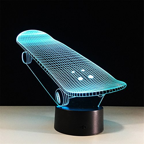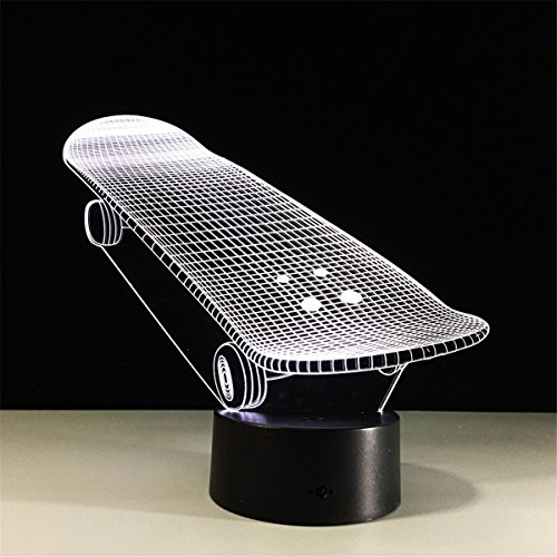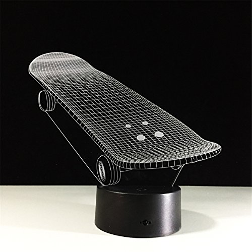 -. Title : Skateboard 3D Remote Control ILLusion Night Light Stunning Visual Colors Changing Table Desk Optical Lamp Bedroom Children Room Decorative Household Nightlight for Kids