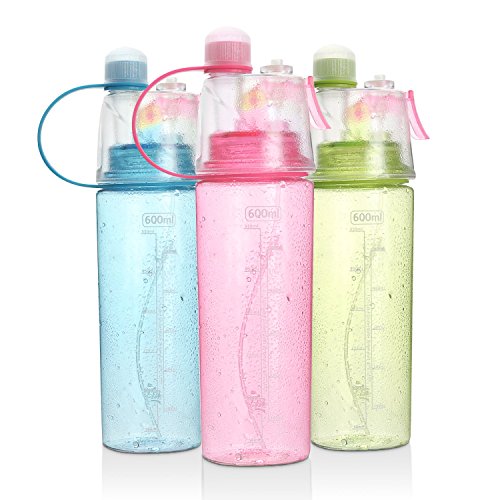 Sports Bottle BPA Free Leak Proof Exercise Mist Spray Water Bottle for kids/students 0.6L 3 Colours