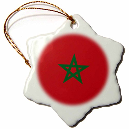 3dRose orn_158383_1 Flag of Morocco-Moroccan Red with Green Pentagram Star Seal Ensign-Snowflake Ornament, Porcelain, 3-Inch