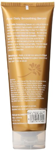 ReleaseDate : 2013-08-20 Studio : Brazilian Blowout Publisher : Brazilian Blowout Binding : Health and Beauty Product Description Acai Daily Smoothing Serum is a unique leave-in styling protectant that smoothes, conditions and detangles while protecting the hair from thermal styling and environmental damage. An exclusive Brazilian Super-Nutrient Complex infuses the hair with a rich source of amino acids to help strengthen and reconstruct while locking in moisture and locking out humidity. The end result is smooth frizz-free, radiant hair. Full spectrum UVA/UVB protection. 0