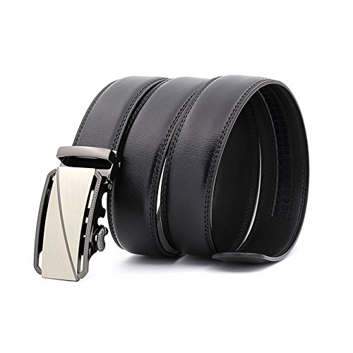 -. Feature : 100% Genuine leather belt for men. / No holes:just slide the dress belt into sliding buckle and pull the ratchet belt through,the nice belts buckle simply auto locks the automatic belt,to release the belt,gently push the lever on the side of the removable buckle and lock will snap.smooth and sleek. / Extremely comfortable:removable buckle allows you to cut the ratchet belt to your ideal size to give a primmer and custom-tailored appearance. / One size fits most(28"-48" waist). / 100% satisfaction guaranteed,fashion belts for men,if there is any problem, let us know and our customer service team will make things right: full refund or a free replacement.