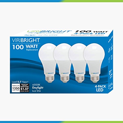 100W Equivalent LED Light Bulb, E26 Base, 6500K Daylight, White, 270 beam angle, Pack of 4 (Daylight)