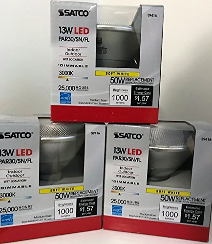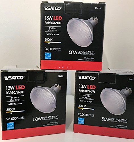3 Pack Satco S9416 Par30 Short Neck LED 3000K 40' Beam Spread Medium Base Light Bulb, 13W