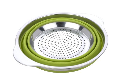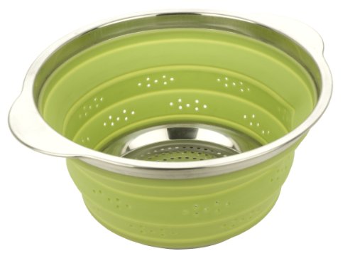 MIU France Collapsible Silicone Colander with Stainless Steel Rim, Green